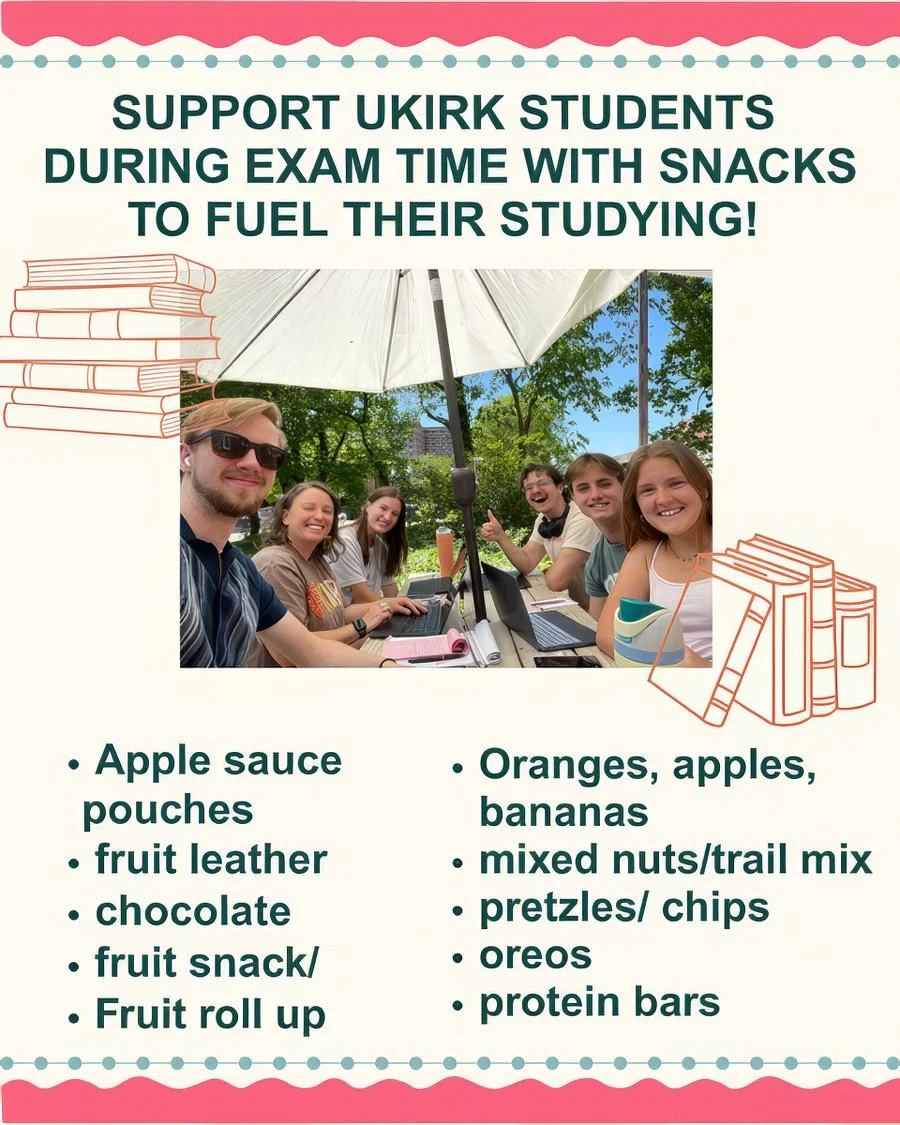 Help Care for our UKirk College Students by Providing Study Snacks!